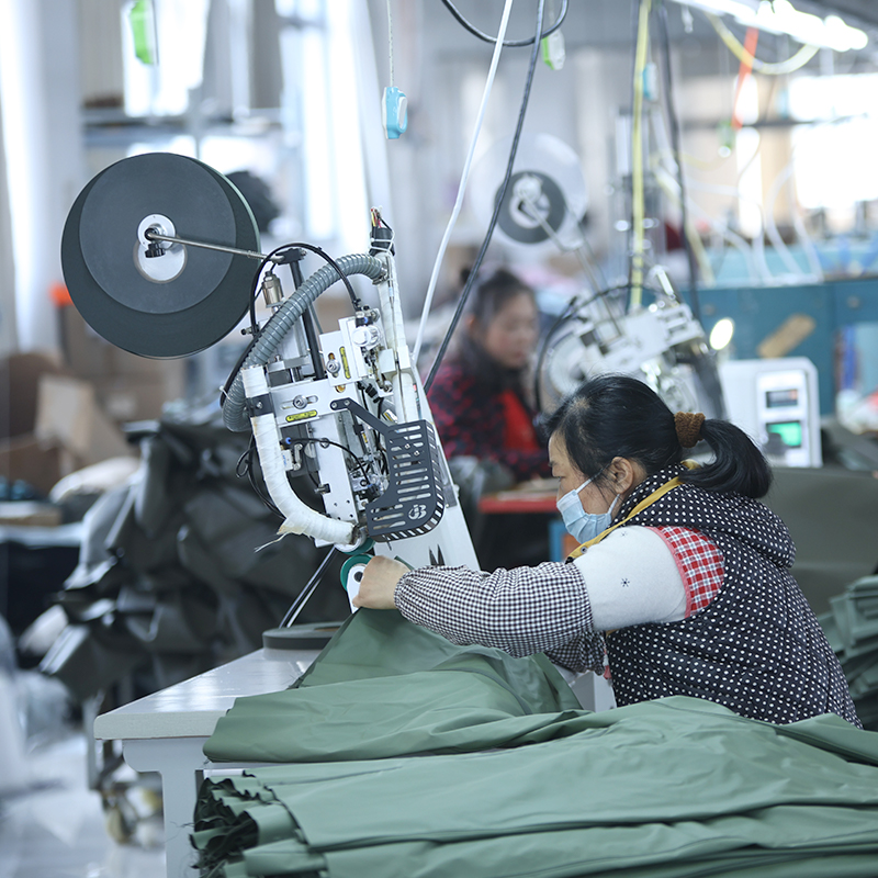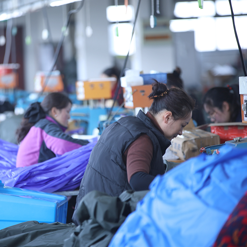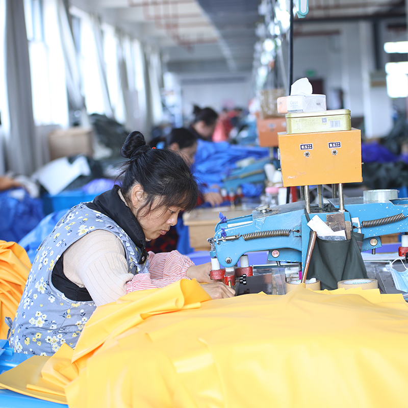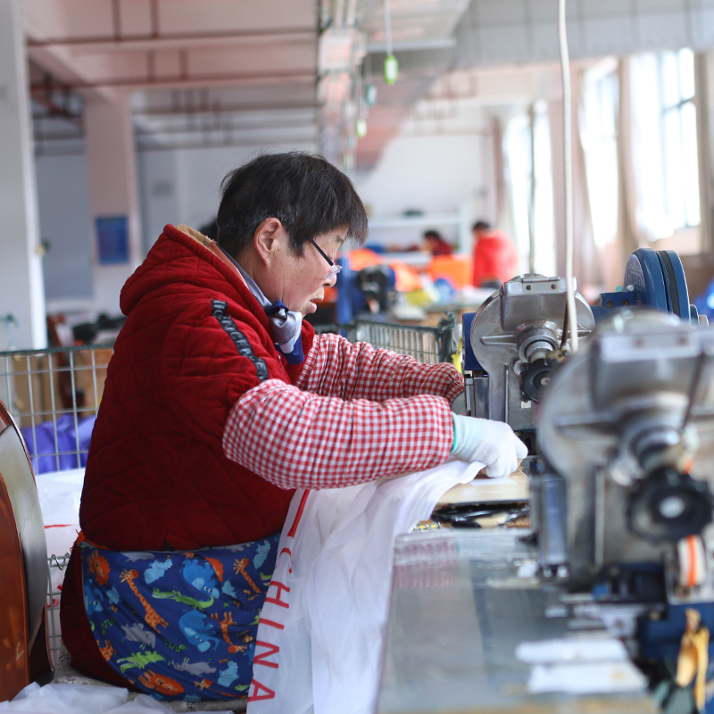 I øjeblikket er der 10 produktionslinjer, mere end 60 højfrekvente maskiner, som hver kan rumme to personer, mere end 20 symaskiner og mere end 200 operatører. For at give en effektiv indkøbsoplevelse af høj kvalitet har vi også 3 kvalitetsinspektionspersonale og 5 R&D-personale.