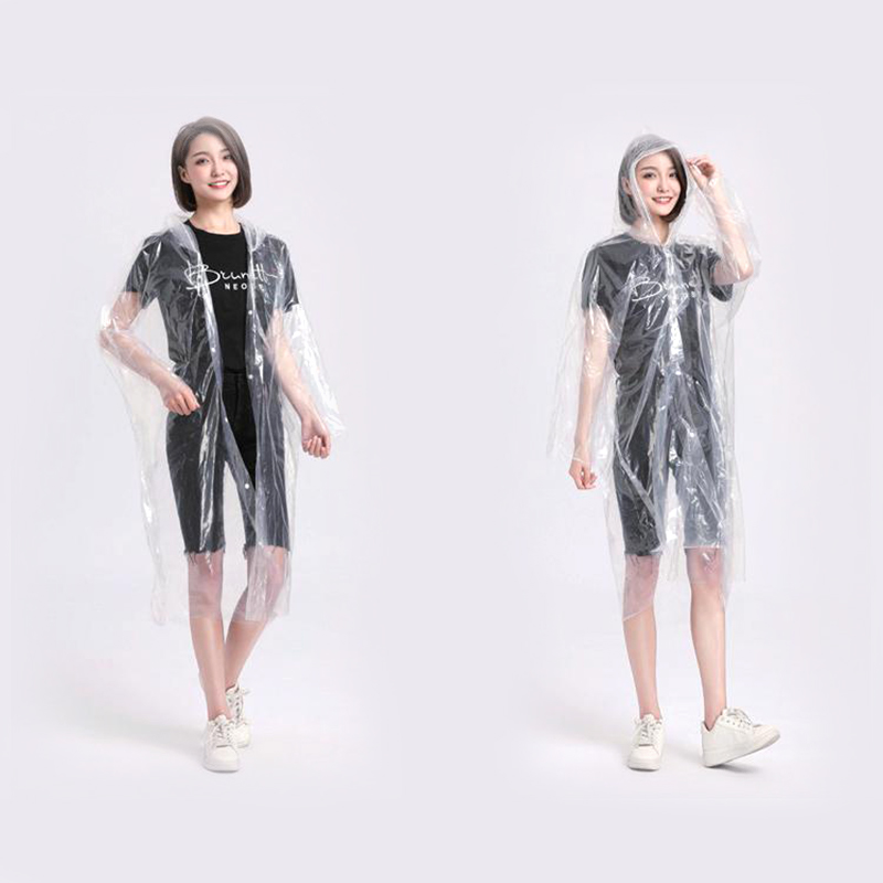 Farverige PE engangsregnfrakker er lavet af polyethylen (PE), lette, vandtætte og nemme at bære, til udendørs aktiviteter, festivaler, campingture eller hverdagsbrug.