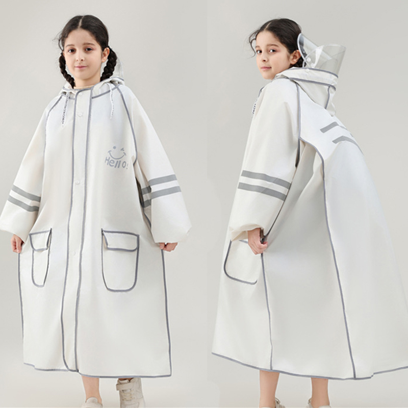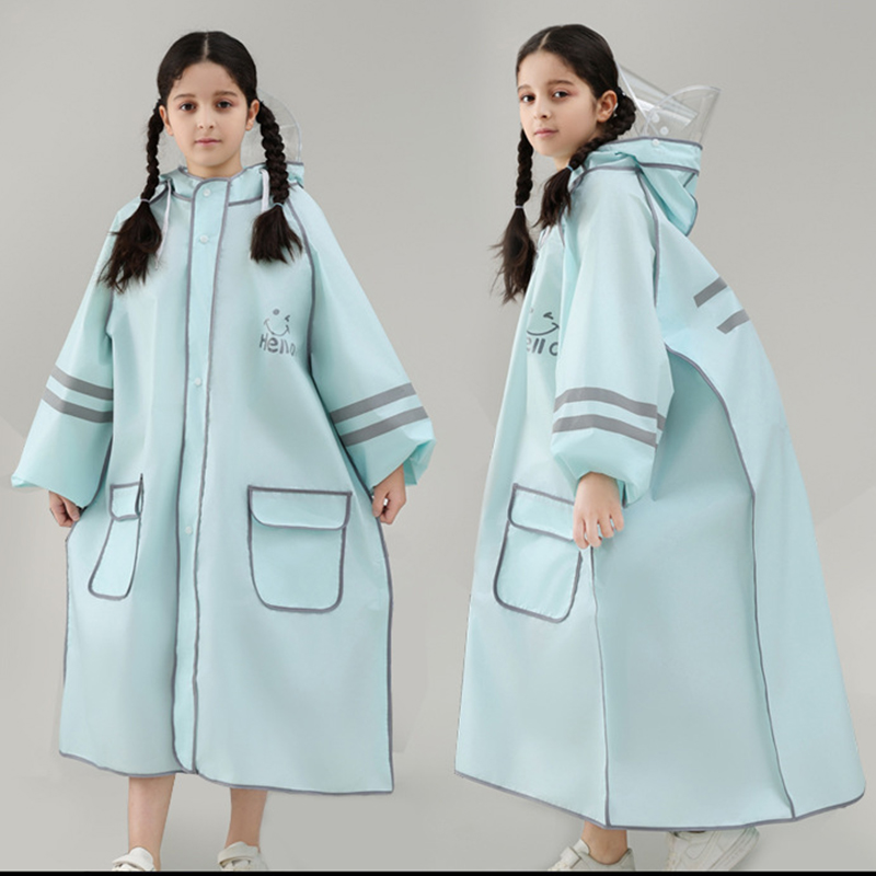 Børnenes regnfrakke med dobbelt skygge og lange lynlås kombinerer praktisk funktionalitet med forbedret beskyttelse af børn mod elementerne. Denne regnfrakke har en dobbeltlagskonstruktion med et vandtæt ydre lag, der afviser regn og fugt. Det indvendige lag er designet til at være åndbart, hvilket sikrer behageligt at have på i lange perioder. Dens forlængede længde giver fuld dækning og beskytter effektivt dit barns krop mod regn og vind. Designet med lynlåslukning gør det nemt at tage af og på, og nemt for børn at klare sig selvstændigt. Derudover har regnfrakken en hætte med en kant, designet til at flytte regn væk fra ansigtet og øjnene, hvilket forbedrer den generelle beskyttelse.